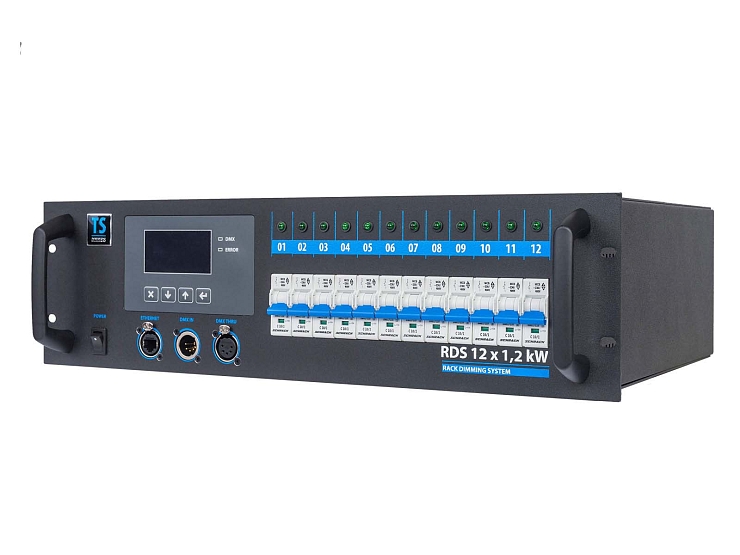 Stmívací jednotky v 19'' provedení splňující současné nároky na funkci stmívacích zařízení i nejnovější technické normy. Moderní plně digitální řídící jednotka TSC 12 řízená dvěma procesory zajišťuje maximální komfort a jednoduchost obsluhy a zároveň umožňuje přístup k množství nastavitelných parametrů. Na displeji řídící jednotky je zobrazována aktuální výstupní hodnota všech kanálů, napětí jednotlivých fází a teplota celého systému. TSC 12 umožňuje např. výběr z 11 přednastavených křivek, přiřazení jakékoliv DMX adresy kterémukoliv stmívači (PATCH), nastavení teploty, která bude nadále udržována, blokování jednotky heslem apod. Určení pro zájezdové účely i pevné instalace pro malé divadelní scény, kluby, víceúčelová kulturní zařízení, TV studia.