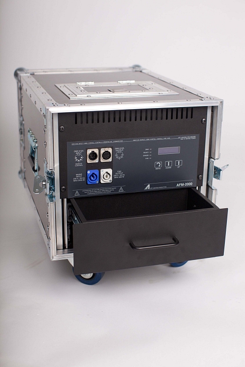 AFM 2000 Case je výrobník mlhy v zabudovaný v transportním kufru. Jeho koncepce je založená na požadavcích a zkušenostech touringových společností. Při tvorbě AFM 2000 Case byl kladený maximální důraz na praktičnost a spolehlivost. Mimo funkce a výhody základního typu AFM 2000 nabízí AFM 2000 Case navíc: - Transportní kufr s kolečky - Vestavěná nerezová nádržka na kapalinu se šikmým povrchem ve tvaru nálevky - Vestavěný výsuvný a polohovatelný ventilátor s vysokým výkonem